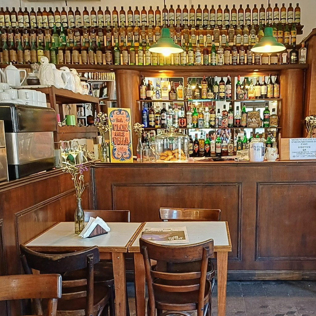 On we went past a ‘now you see it, now you don’t’ art-nouveau facade, along shady, tree-lined streets until we came to a classic corner-cafe, La Flor de Barracas, one of the Notables.