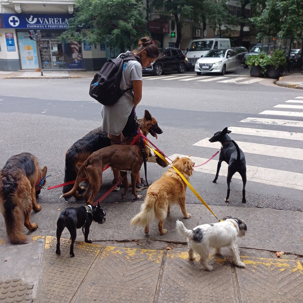 ‘So far, I like this walk’, said Jim, munching on his medialuna. People queued for buses, a policeman parked his quad-bike in front of us, and a couple of dog-walkers passed, clutching a fistful of leads, trailing dogs, large and small, like the Pied Piper. Dog walkers are a bit of a thing in Buenos Aires, it’s not uncommon for them to walk ten or twelve dogs each.