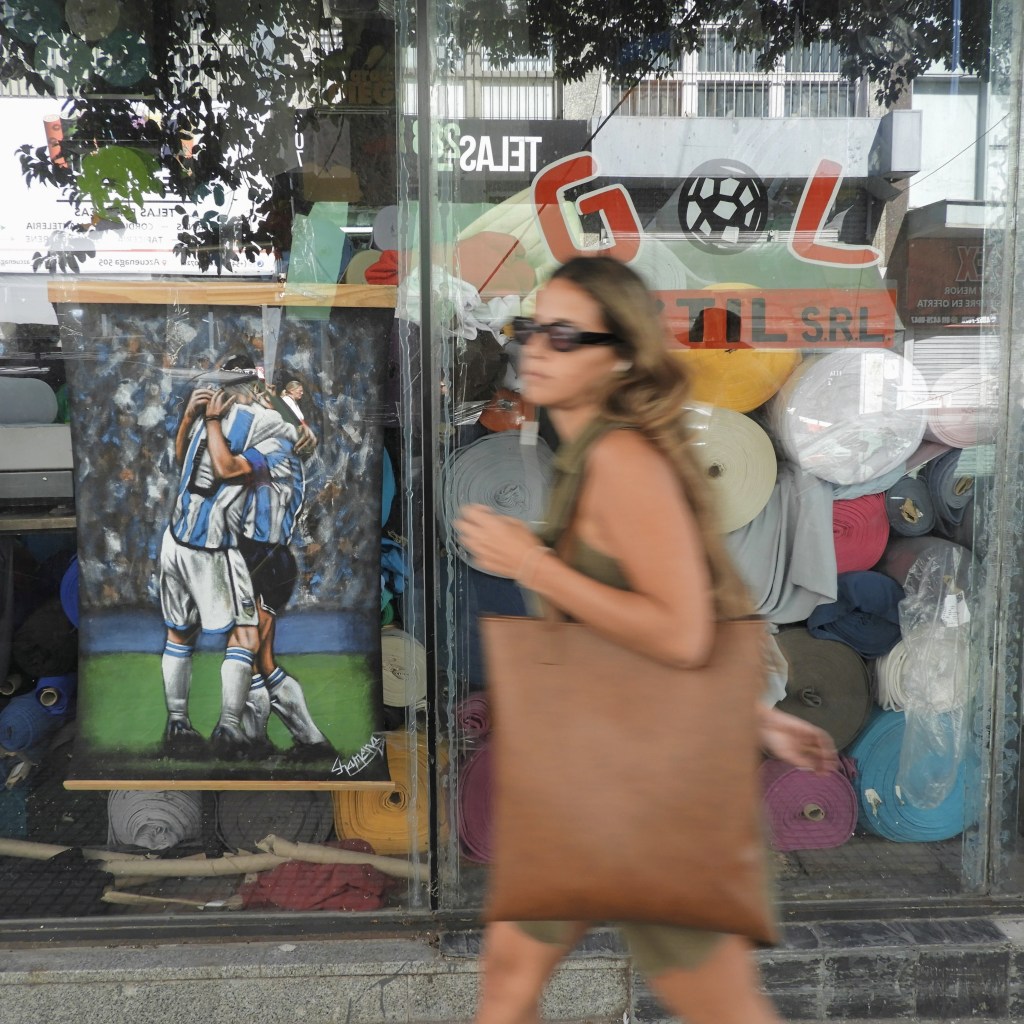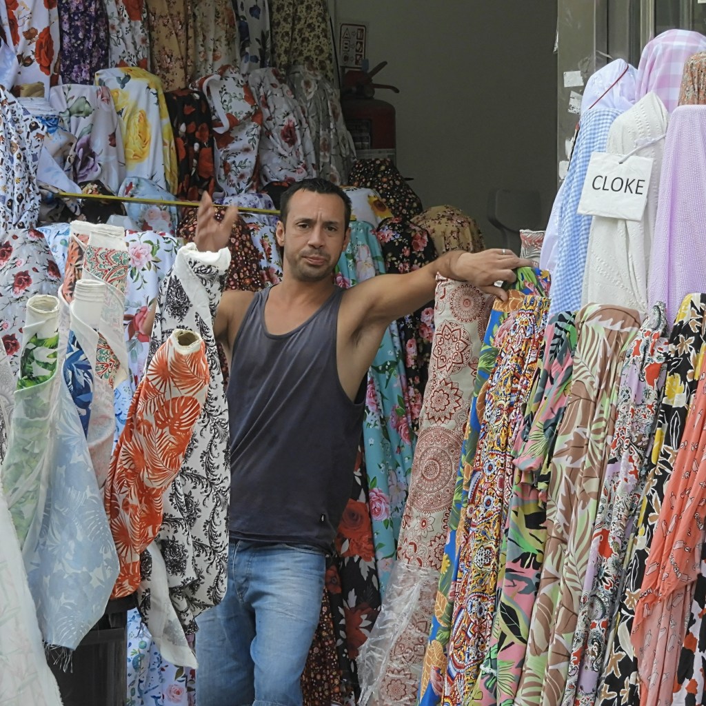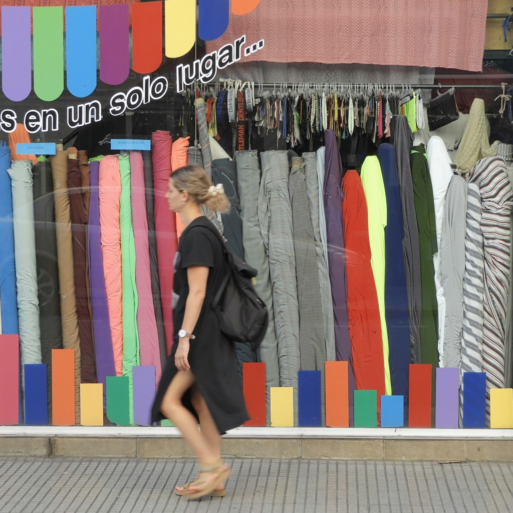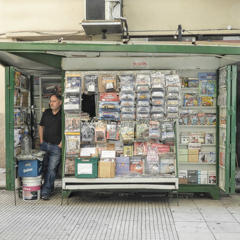 But then Lavalle becomes niche and speciality-shops abound. It’s a magpie’s dream. Rolls of brightly-coloured fabric line the streets, protrude from hand-carts, and dominate shop windows. Cloth for clothing, bags, flags, backpacks and window shades. Cloth for any need. Haberdashers sell buttons, ribbons, and zips. There are stores for party supplies, stores that rent costumes. One store sold only toppers for wedding cakes! Now that’s niche.