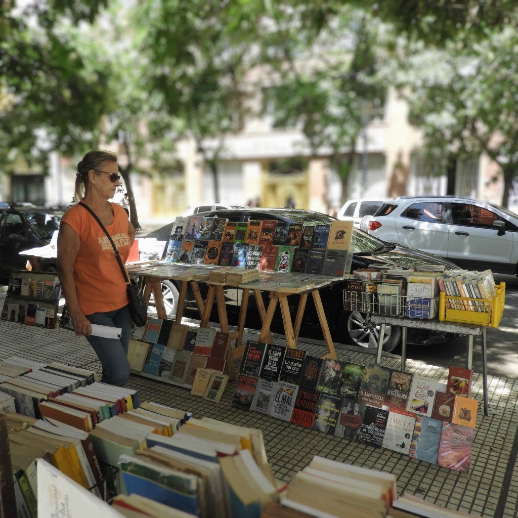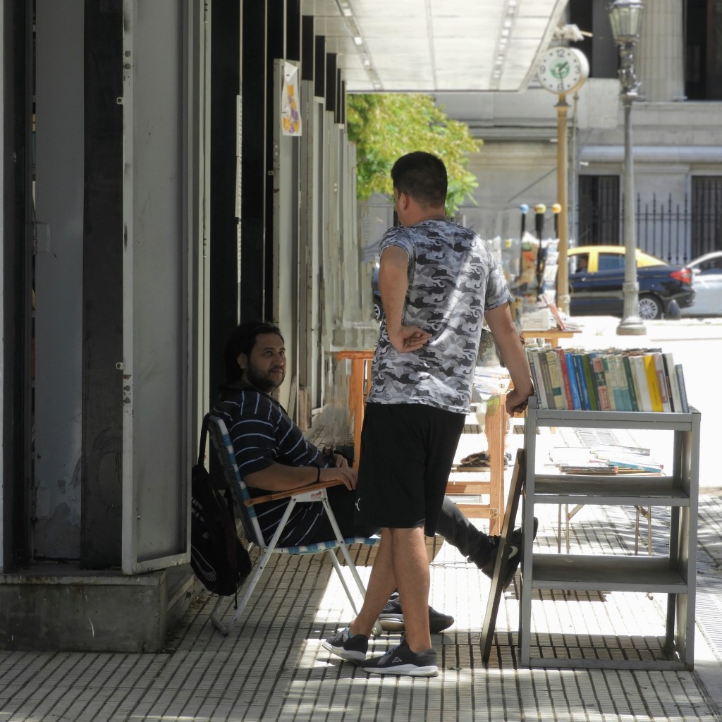 Emerging from shops, money-changers (‘cambio, cambio, cambio’ and ‘para cambiar chicos’) and a business district, Lavalle crosses the Avenida 9 de Julio, which at 110 metres across is the widest road in the world.There is no hope of crossing it’s 16 lanes of traffic in one change of lights. Plaza Lavalle then offers another burst of green, more turn-of-the-century buildings, memorial statues and book stalls with an eclectic mix of titles – books on the intricacies of law rub shoulders with Danielle Steel novels, and books on parliamentary reform sit next to Dostoevsky. Lavalle himself surveys the scene from his pedestal.